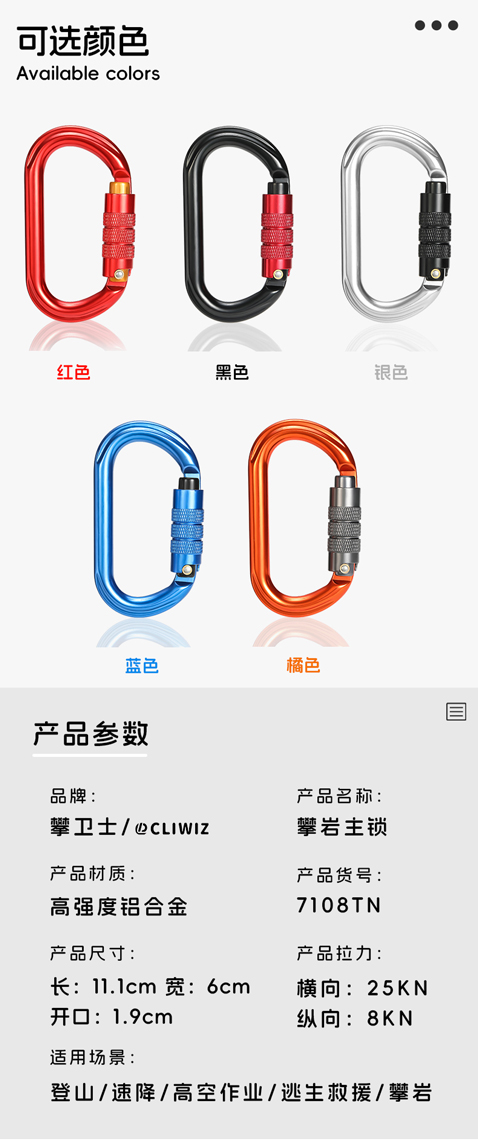 | Material | Langer Haken: 7075Aviation-Aluminium, Schraubverschluss: 7075Aviation-Aluminium, kurzer Abschnitt: 6061Aviation-Aluminium |